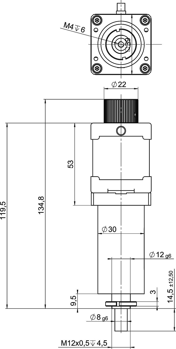 High-resolution linear actuator with stepper motor; 2-phase stepper motor with gearhead; 25 mm travel range; 50 N feed force; 1.5 mm/s maximum velocity; trapezoidal-threaded spindle; limit switches: Hall effect; 0.5 m cable length