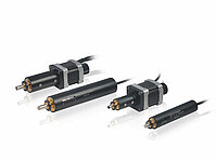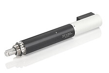 Ball screw for high velocities and a high number of cycles. Nonrotating tip for uniform motion prevents wobble, torque, and wear at the point of contact. Incl. flat and spherical tip for decoupling forces. Noncontact limit switches protect the mechanics. A direction-sensing reference switch supports automation applications. Position-controlled variants with differential encoder driver in the connector for safe signal transfer over distances up to 10 m.