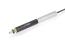 High-resolution linear actuator with DC motor; DC gear motor; 20 mm travel range; 120 N feed force; 2 mm/s maximum velocity; ball screw; incremental rotary encoder, 2048 counts/rev. sensor resolution; limit switches: Hall effect; 0.5 m cable length