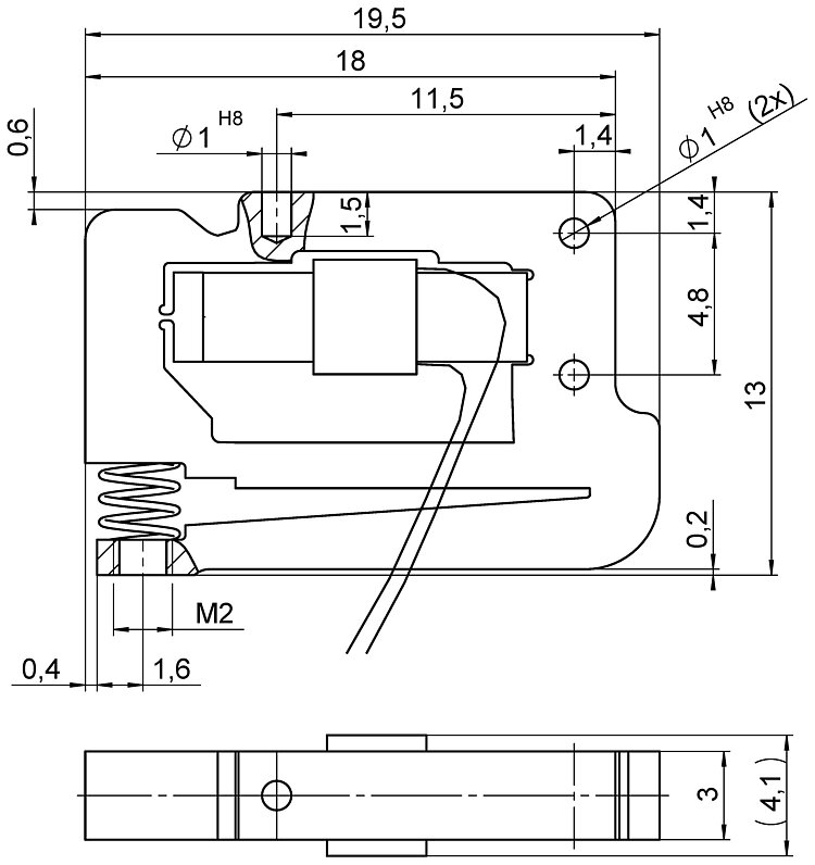 Compact PiezoMove linear actuator; PICMA® piezo actuator drive; 300 µm travel range (open loop); push force capacity 2 N; pull force capacity 1.5 N; bare wire strands; 0.1 m cable length