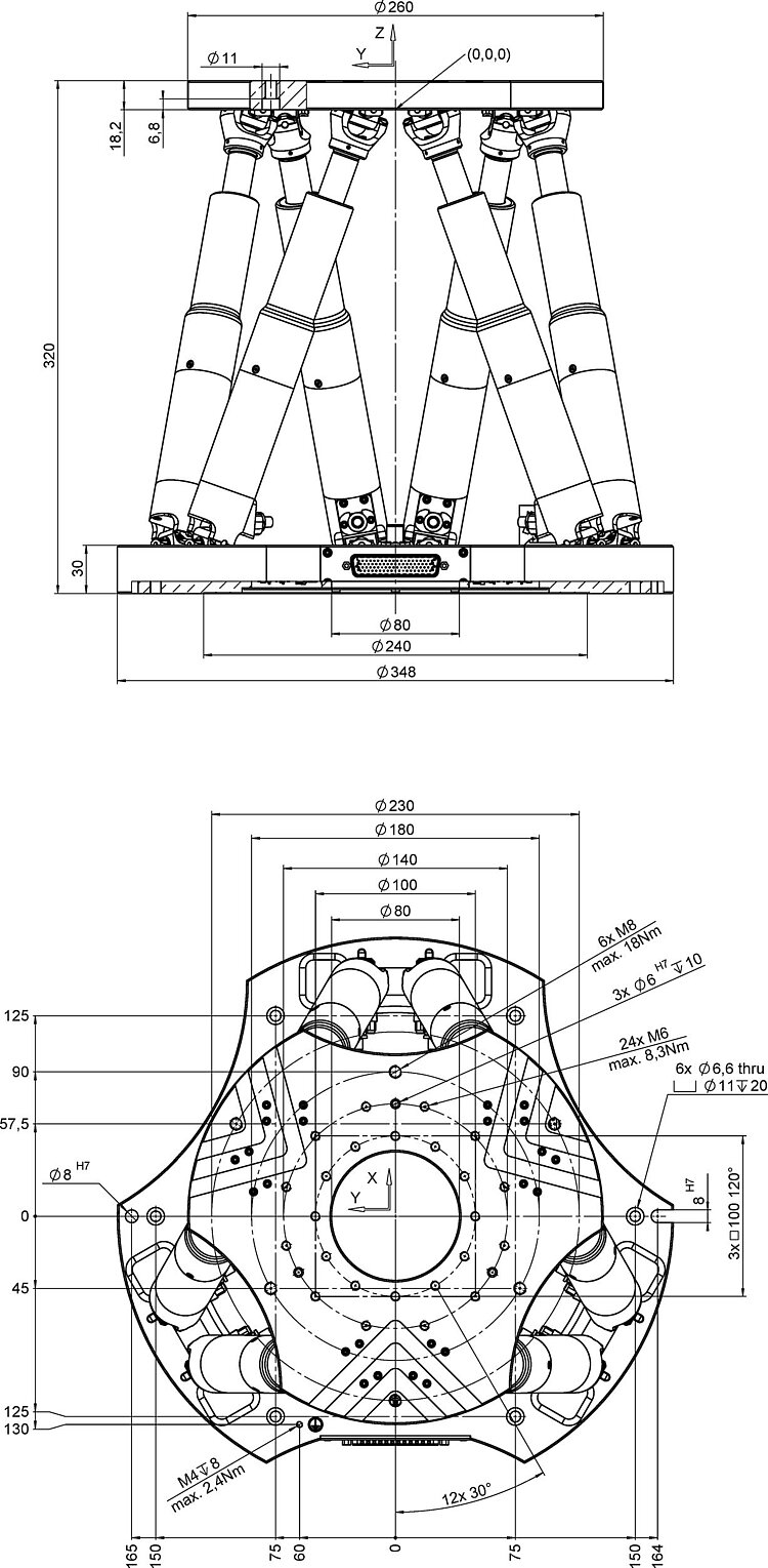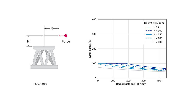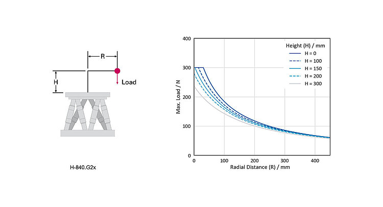 Precision hexapod; brushless DC gear motor; absolute encoder; 30 kg payload; 2.5 mm/s maximum velocity. Connecting cables are not included in the scope of delivery and must be ordered separately.