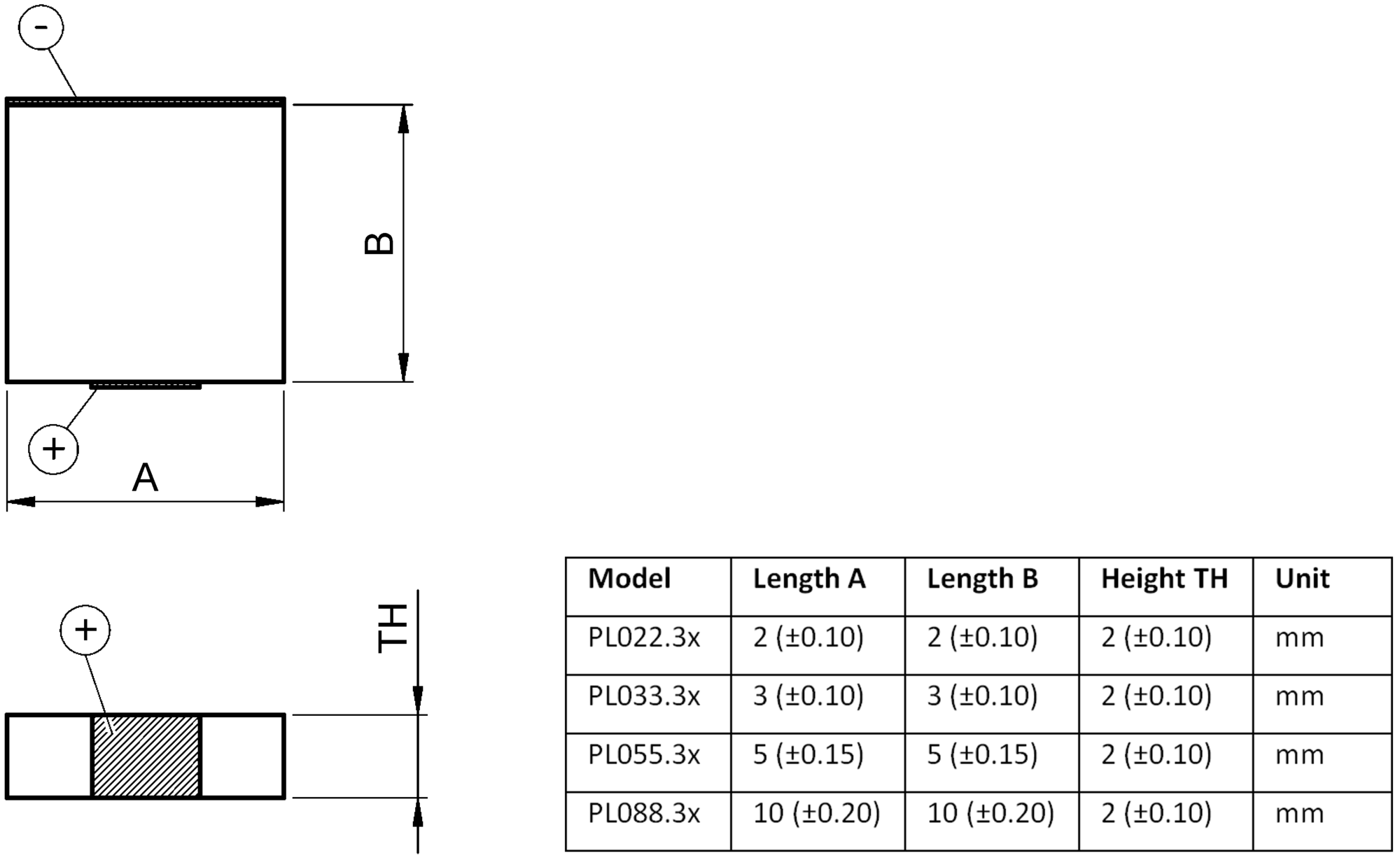 | PL022.3x | PL033.3x | PL055.3x | PL088.3x | Unit | Tolerance | |