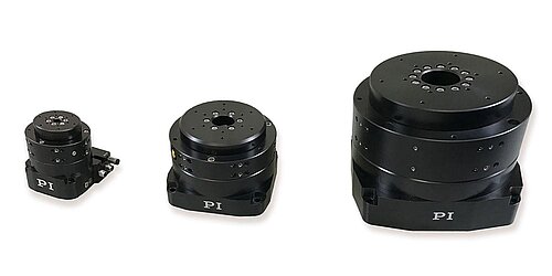 Requirements for rotary motion show a very broad range of different sizes, load capacity, and positioning accuracy. PI offers stages with all kinds of motorization and guiding options: air-bearing, torque motor driven, motorized worm-gear coupled, tiny piezomotor stages and specialized goniometer stages with orthogonal tip-tilt mounting option. All of them can be mounted to multi-axis combinations with corresponding linear, vertical and XY stages.