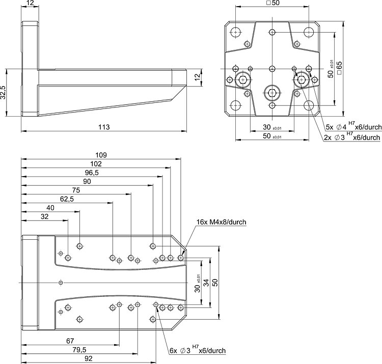 • Adapter bracket on positioner: The adapter bracket can be mounted on the moveable translation stage of the positioner and is then moved with the positioner accordingly.