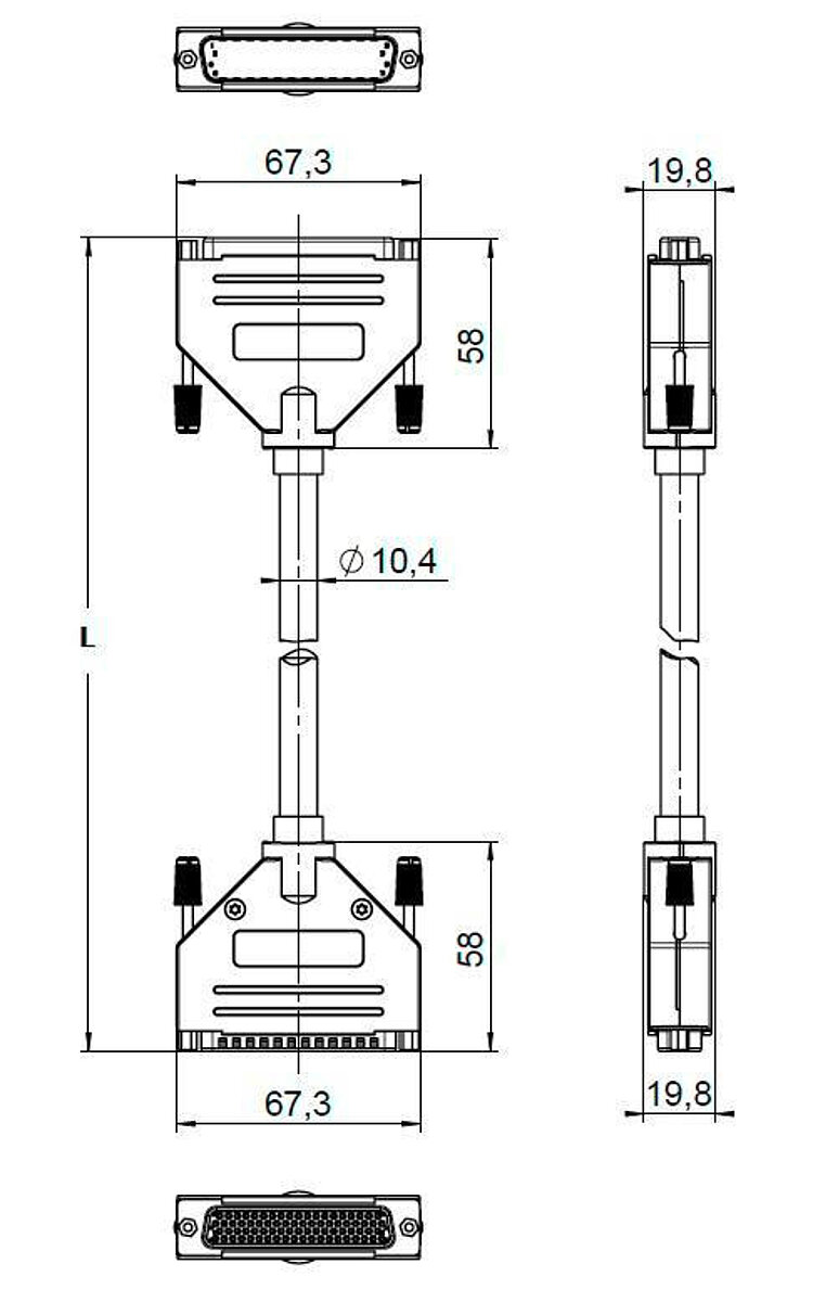 Data transmission cable for hexapods, drag chain compatible, HD D-sub 78 m/f, 10 m