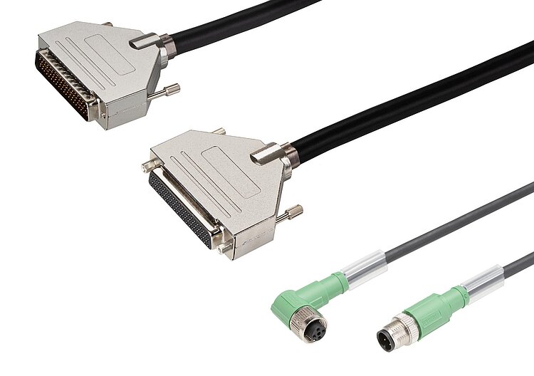 Data transmission cable for hexapods, drag chain compatible, HD D-sub 78 m/f, 3 m